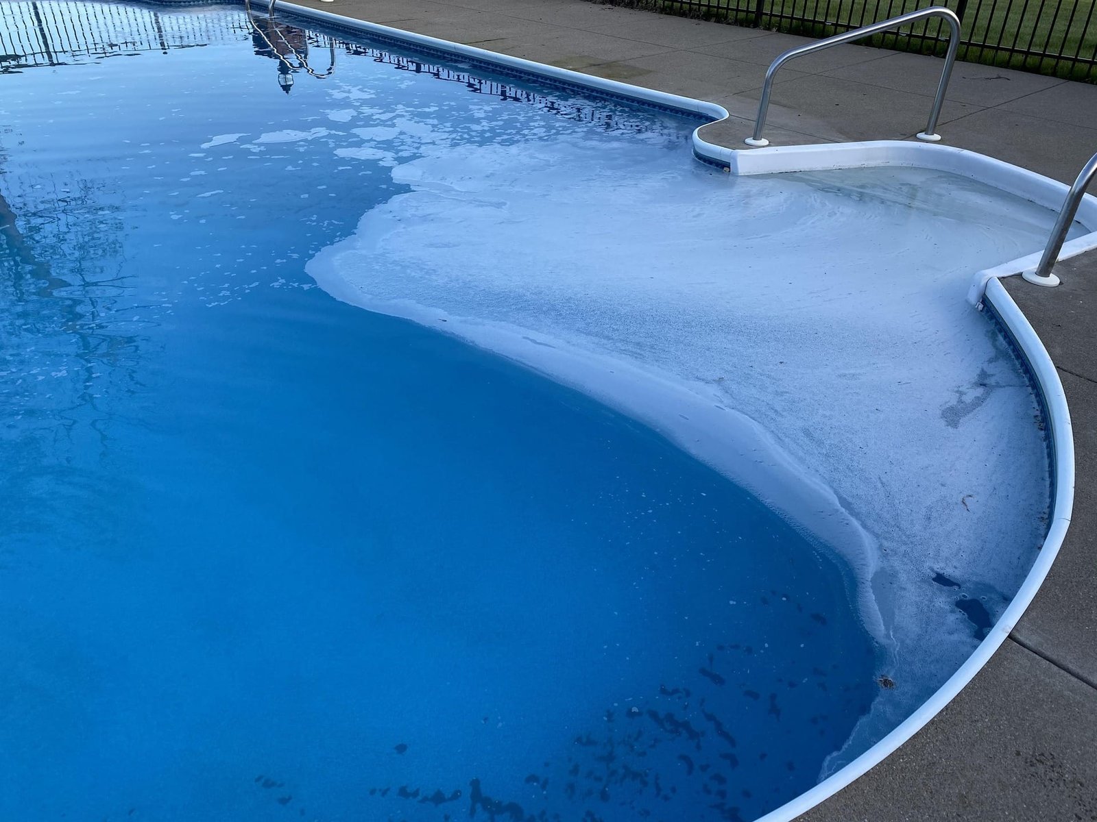 Como identificar: espuma aparece quando há muitas pessoas na piscina, mesmo que a água estivesse perfeita antes. A espuma some parcialmente quando os banhistas saem.